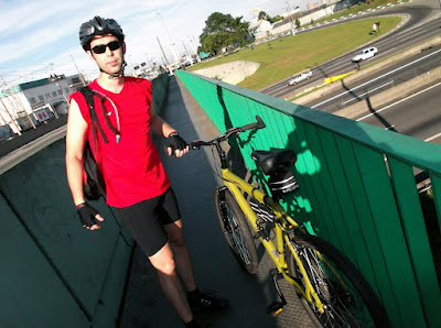 Igor felizão com a bike nova, mais um cicloturista. |